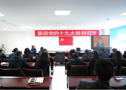 (現(xiàn)代物流 訊 和永歡/文趙琳/攝)10月18日上午9時,舉世矚目的中國共產(chǎn)黨第十九次全國代表大會在北京人民大會堂隆重開幕。現(xiàn)代物流公司黨支部組織全體黨員、發(fā)展對象、入黨積極分子、主管以上干部及商戶黨員代表共計25人在公司會議室收看了十九大開幕式直播盛況,并認真聆聽了習總書記代表十八屆中央委員會作的報告。