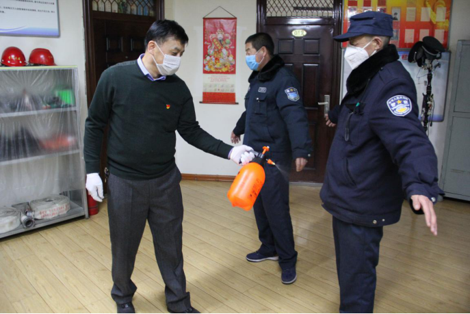 民爆公司黨支部黨員主動承擔起防控工作,在日常消毒,防控檢查,都能看到他們的身影。