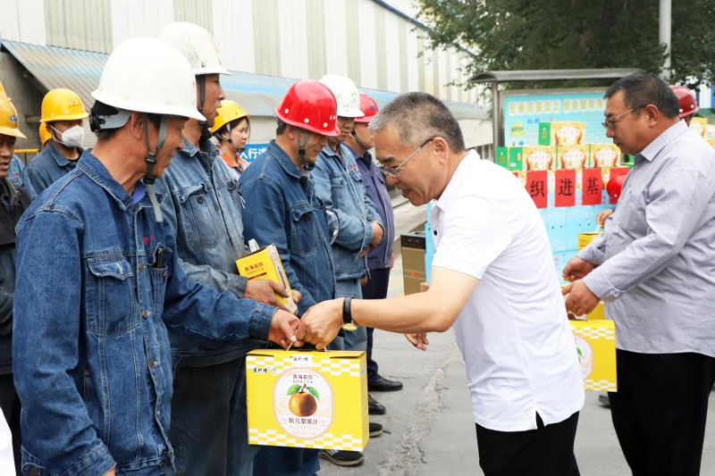 夏日送清涼,點(diǎn)滴沁人心。8月14日,青海省總工會(huì)紀(jì)檢監(jiān)察組組長祁維正,省總工會(huì)二級巡視員張文輝等一行3人蒞臨青海物產(chǎn)工業(yè)投資有限公司開展“夏送清涼”慰問活動(dòng),為夏日高溫下的一線職工送去組織關(guān)懷。集團(tuán)副總經(jīng)理、工會(huì)主席張?jiān)手业认嚓P(guān)人員陪同。