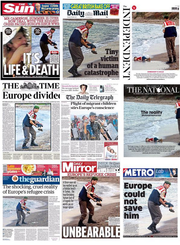 這些照片很快以標簽#KiyiyaVuranInsanlik(沖上岸的人) 席卷Twitter,占據了歐洲各大報刊頭版。